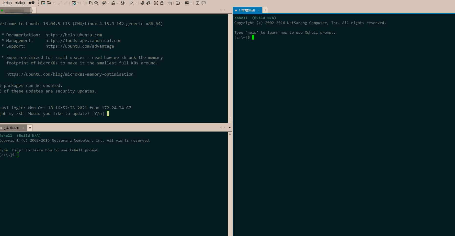不是这个, 跟xshell或者其他终端工具不太一样 , 这个貌似只能分屏同一个服务器 , 不同服务器貌似只能通过tab页切换
