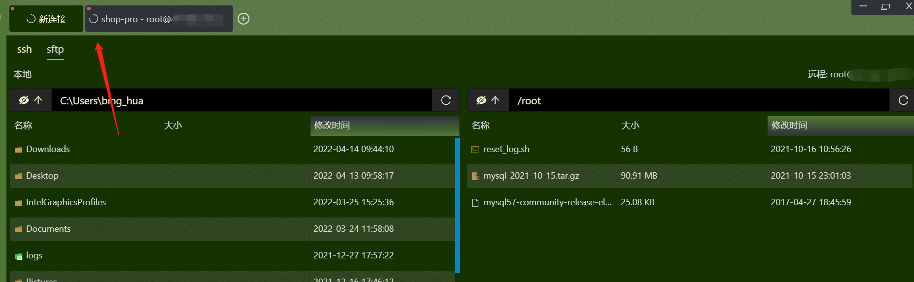 2、点击sftp之后整个连接直接断掉