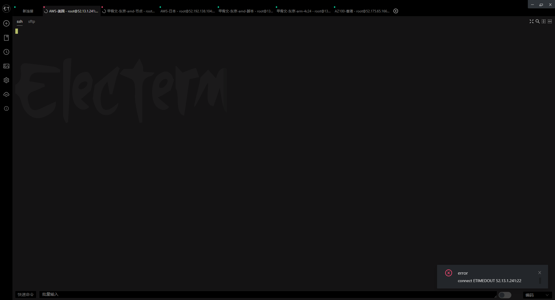 我的几个服务器用其他终端都是可以连接上的,但是在electerm上有两个服务器始终连接不上。