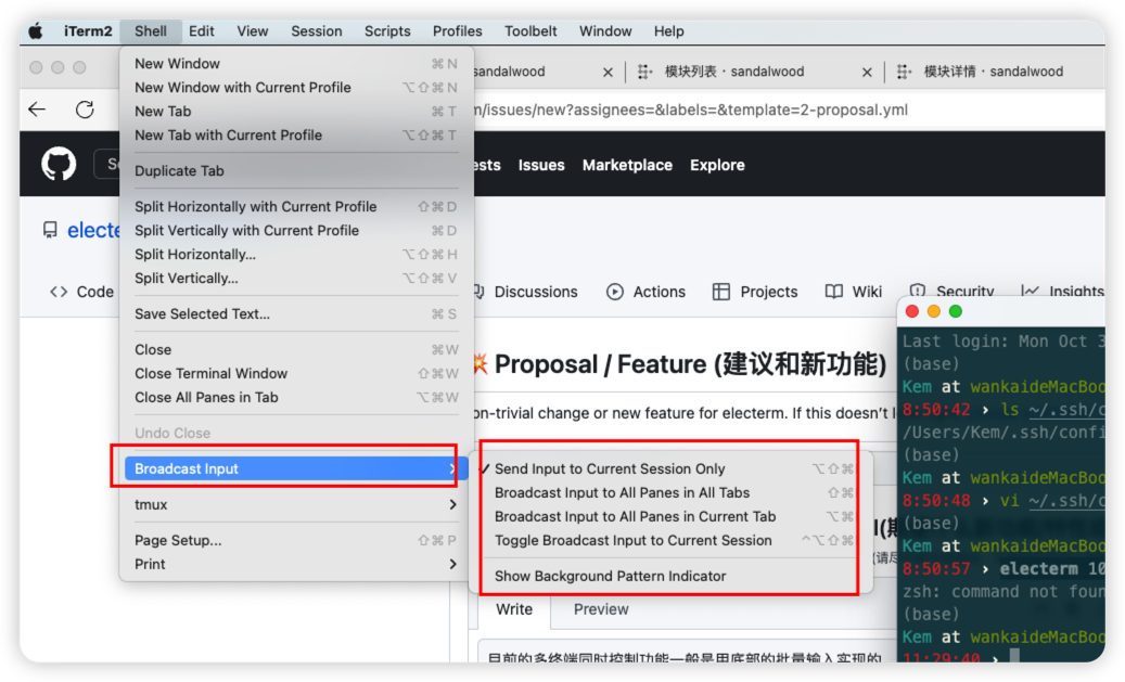 不过这种操作不是很方便,希望能优化成 Xshell / Iterm 类似的功能,可以直接将输入广播到所有窗口,并且可以在单个窗口内关闭