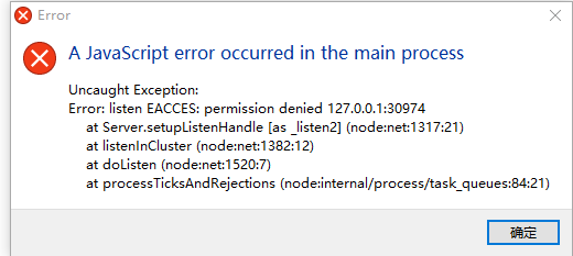 等一阵再打开electerm,则弹窗,猜测这时候某个服务启动了,但netstat -ano | findstr ":30974"却没有显示有关程序。