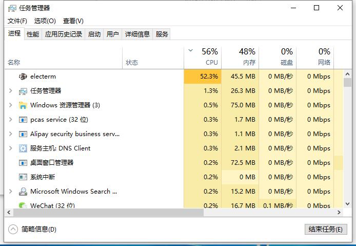 I have closed the electerm's window, but it still running in the background in windows 10, And high CPU usage. It's no problem in windows 7