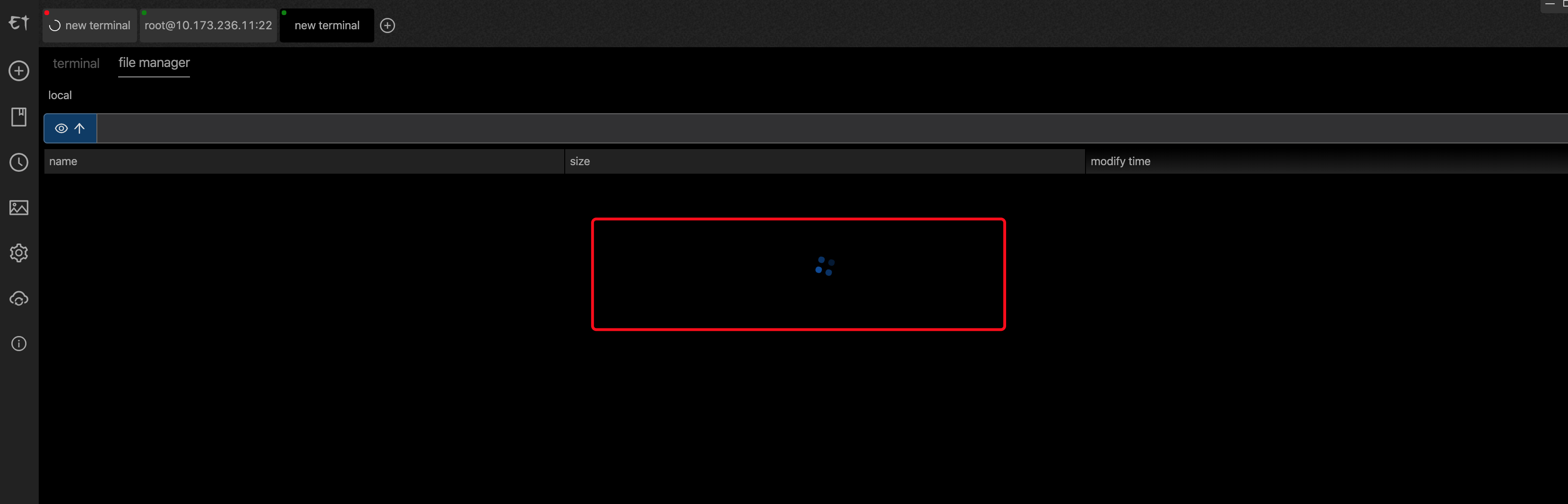 远程的正常,就算新增一个本地的终端也是一直加载中: