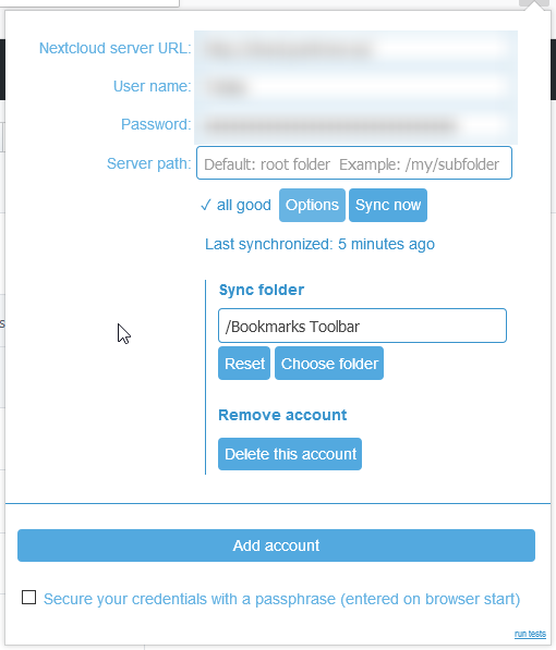That it would sync all the bookmarks inside the bookmarks toolbar folder to my selected NextCloud instance.