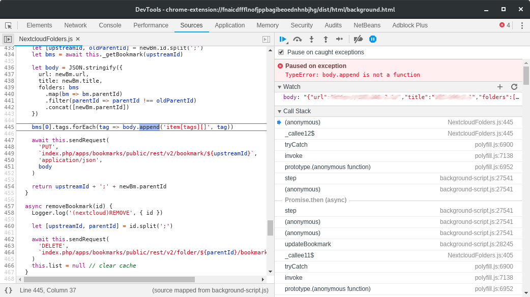 [GH-ISSUE #196] Sync of bookmarks stop with "body.append is not a function" #189