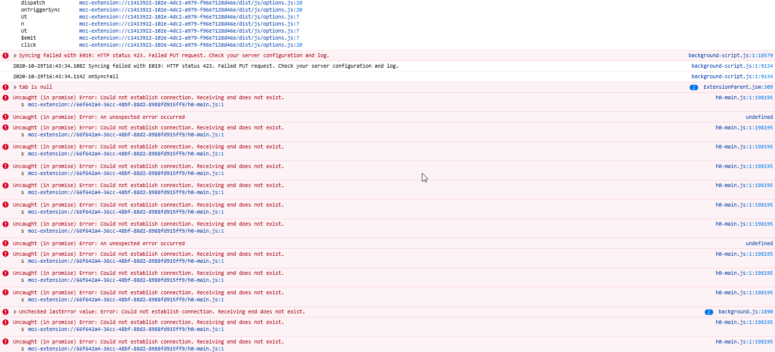 2020-10-20T23:08:59.805Z Syncing failed with E019: HTTP status 403. Failed PUT request. Check your server configuration and log.