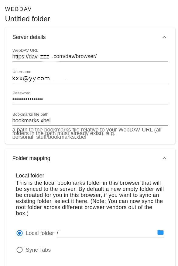 local foldersto "/Favorites bar/Floccus xxx@yy.com@dav.zzz.com)" or " / ".I do: