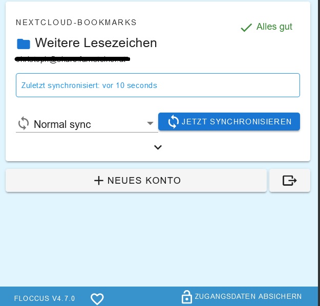 I want to give Feedback. Using Floccus for a while on Nextcloud/Firefox. It works all the time great, thanks for the Tool. :) Today i found the Android App 4.8.4, working very good. ;)