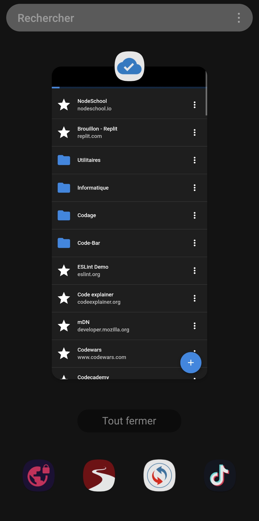 I made a test on purpose, to see if it does it today again: just by going to Floccus App, swipe down and the most rapidly possible click on the "Running apps" button ( ||| ) as I explained on my previous message.