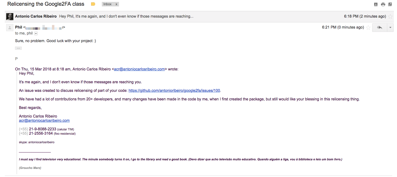 To allow this package to be adopted by other projects, I'm trying to move the license of this package from the original GPLv3 to something more permissive, like MIT, but I need you and the original developer (Phil), to approve it.