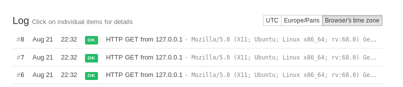 One quick thing to check – in the check details page, at the top right of the log there is a [UTC | Local Time] switcher. Do the received ping timestamps look correct when it's switched to UTC?