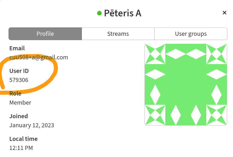 In Zulip, you can look up user's id in their profile (when you click on an user, or on a three dots button next to an user, there's usually a "View Profile" option):