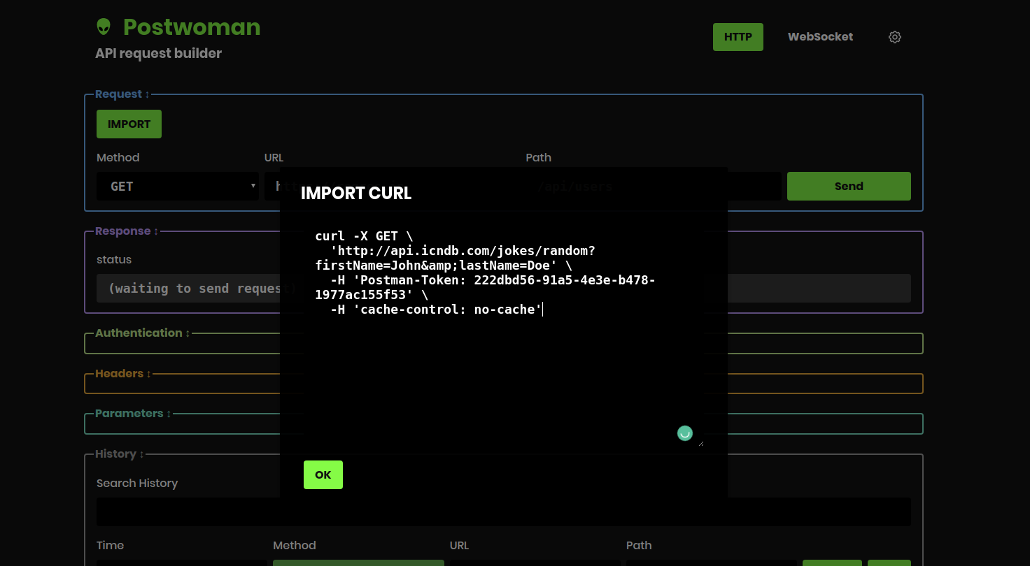 Hey @liyasthomas I have tried to add functionality to import curl commands. Please let me know if any changes are required.