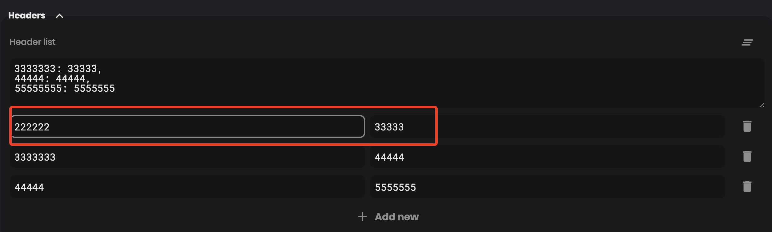 When editing multiple headers, one of them is deleted and its key is not updated