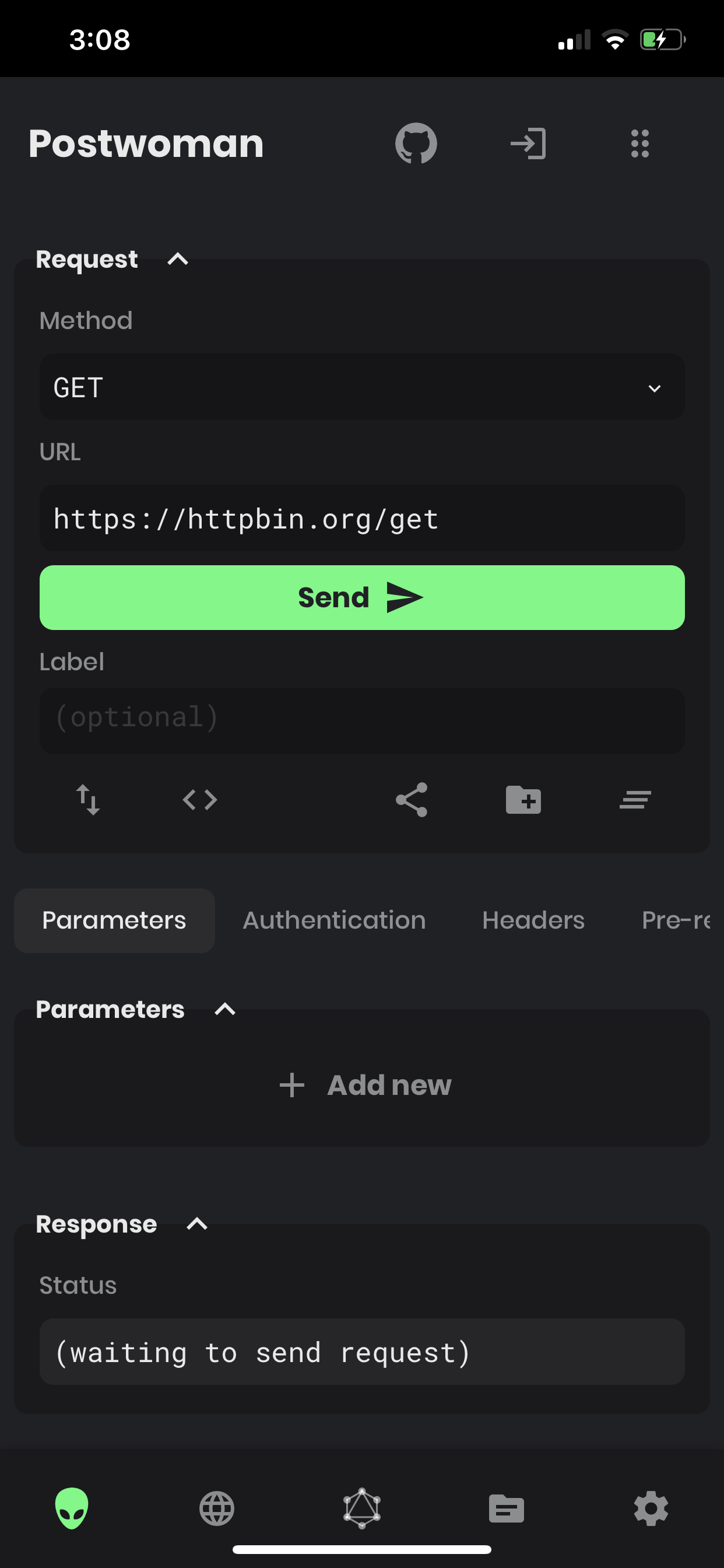 Open the Postwoman PWA on a modern iOS device without a physical home button.