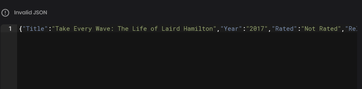 I am trying out the OMDb APIs with postwoman, and with every request there is invalid json message showing up and the json returned although correct isn't nicely formatted, it's all in one liner.