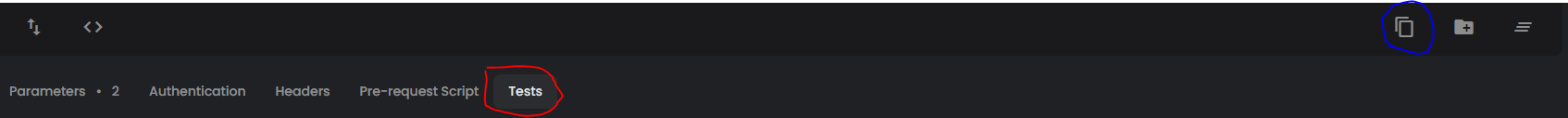 When I click the blue button, I expect it to include any code I have entered in the red Tests section in the request link