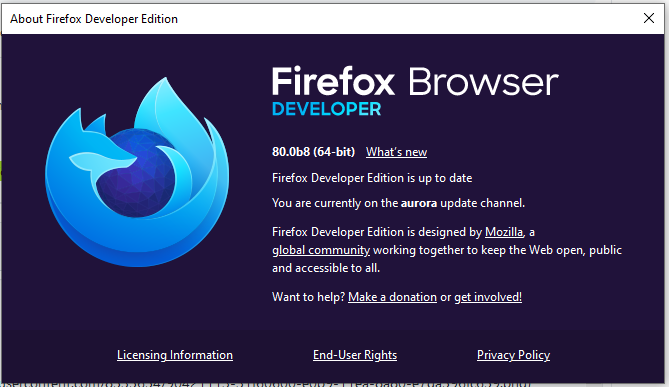 Browser Firefox Developer 80.0b8