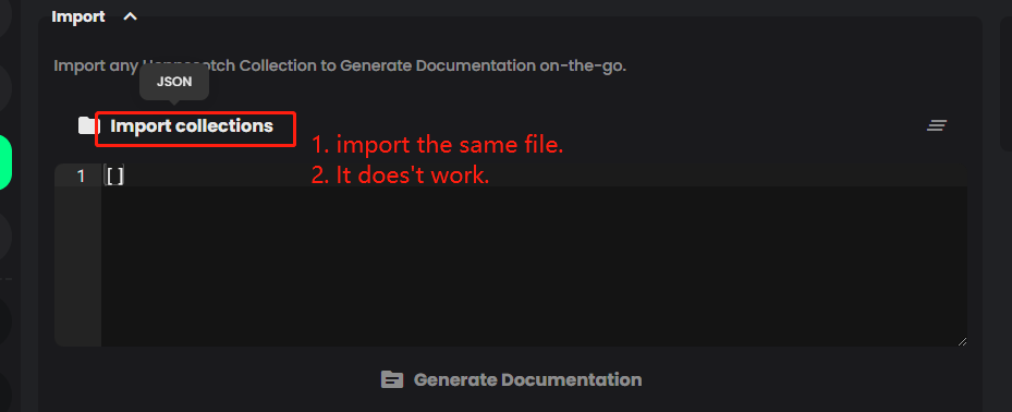 [GH-ISSUE #1124] [documentation module]:The collections file won't be imported twice(click the clear button or delete all the content manually) #393