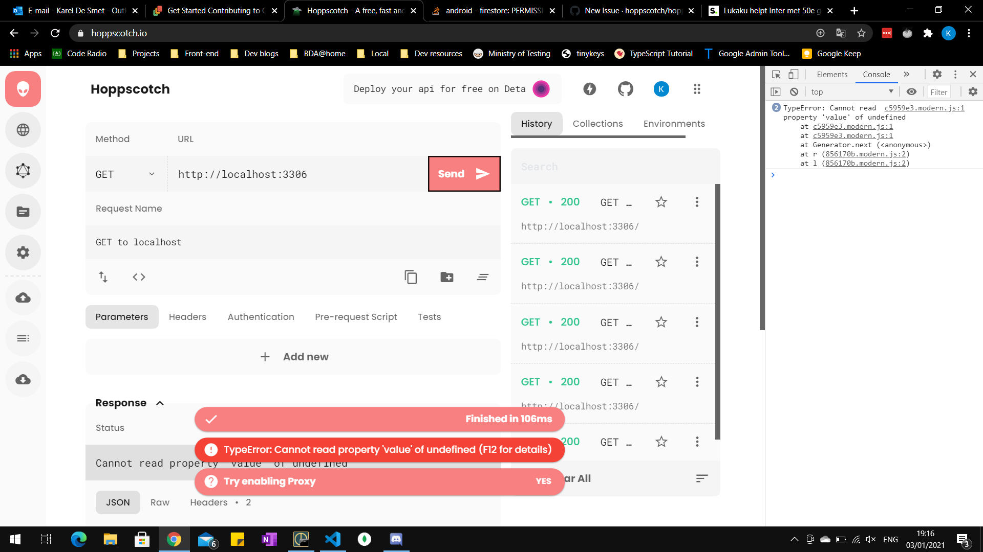 When logged in (in my case via Google), clicking on "Send request" returns a type error.