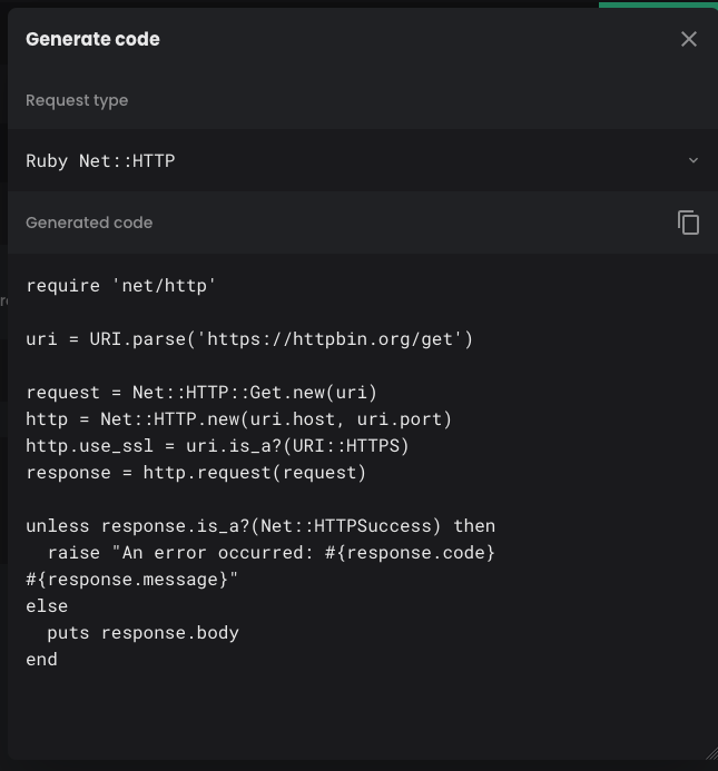 When generating code (for example a cURL command) from a request, the code does not uses syntax highlighting.