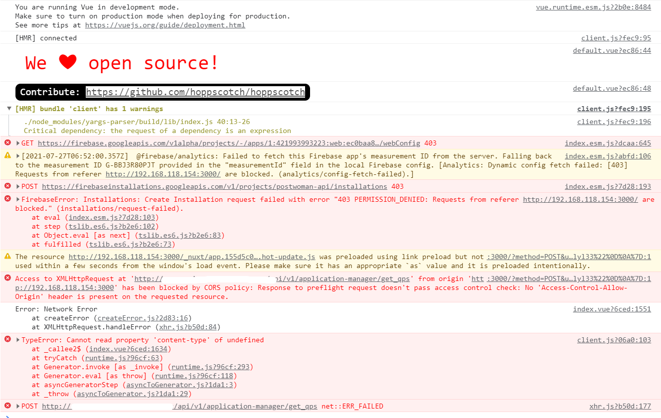 have same error, just come from postwoman. few days ago, it has privacy problem, so turn to this hoppscotch.