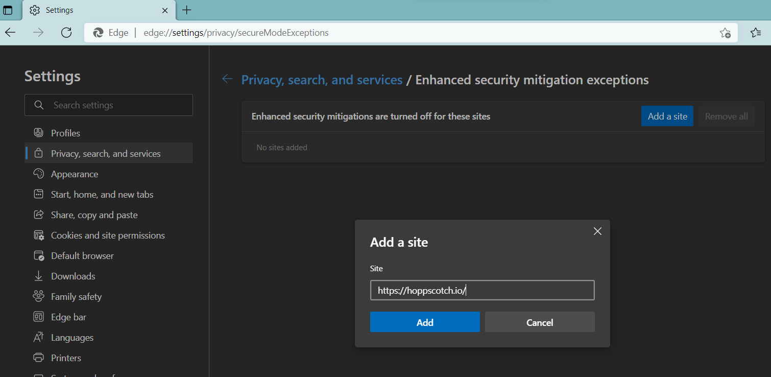 I am unable to load https://hoppscotch.io/ Microsoft Edge