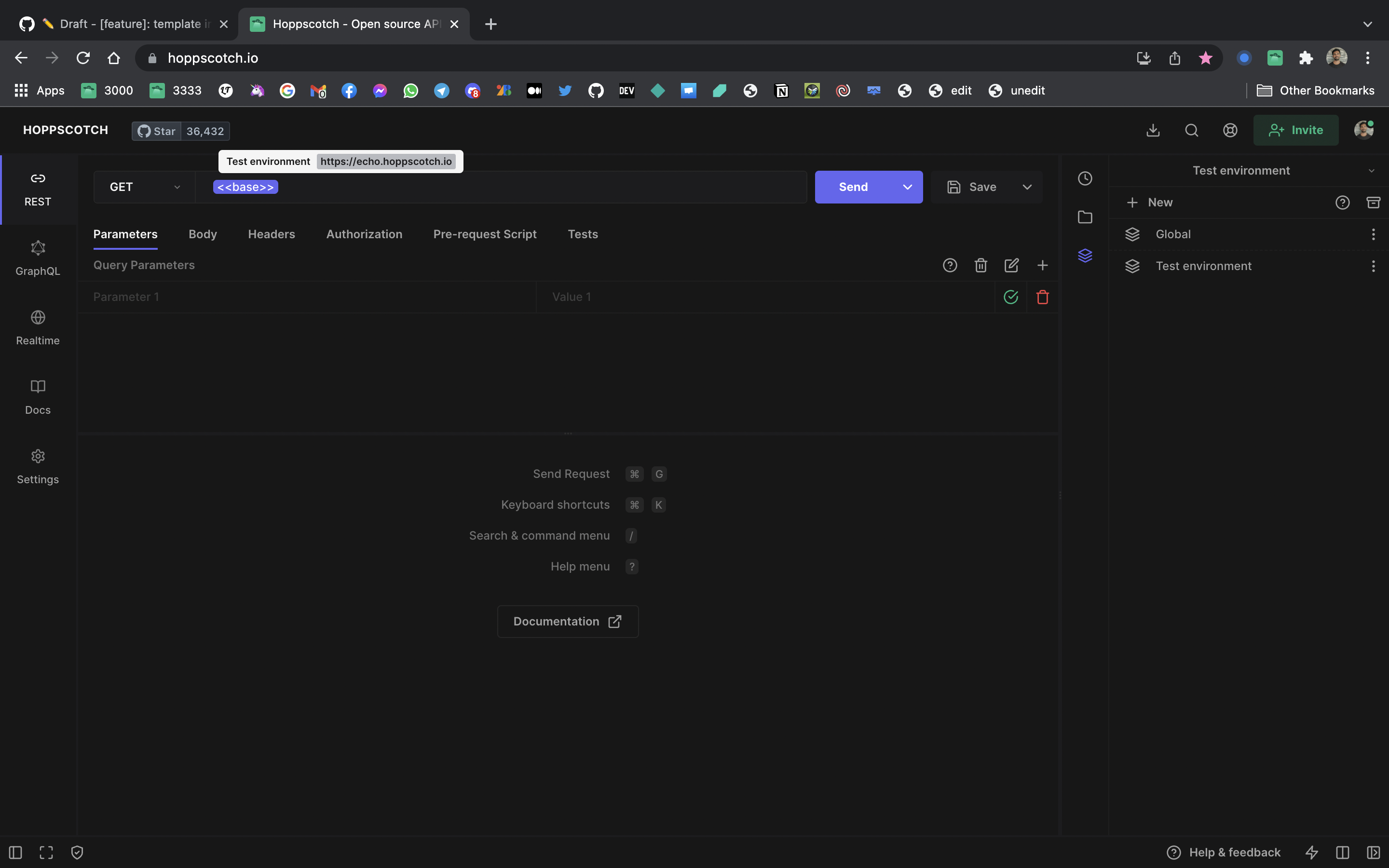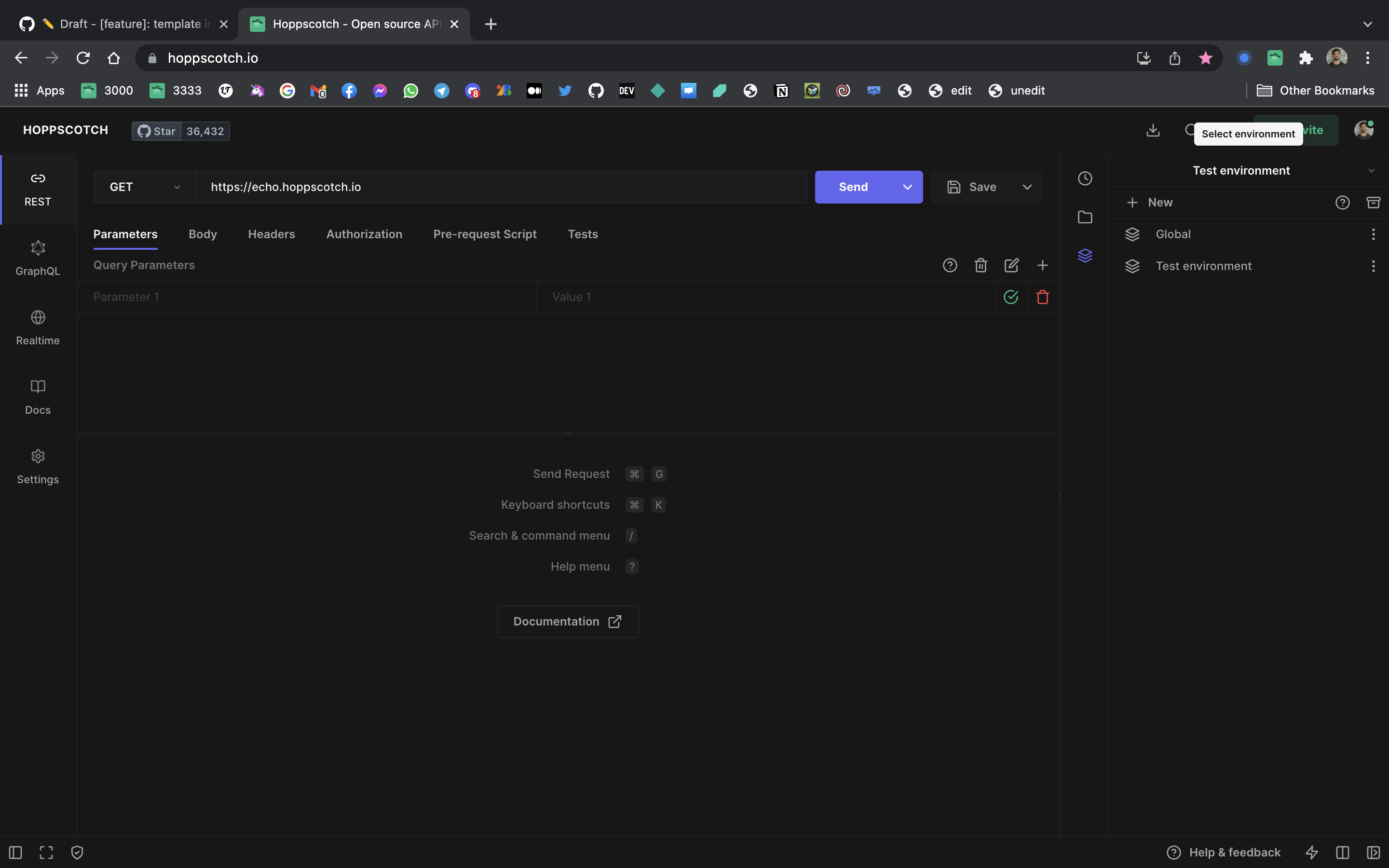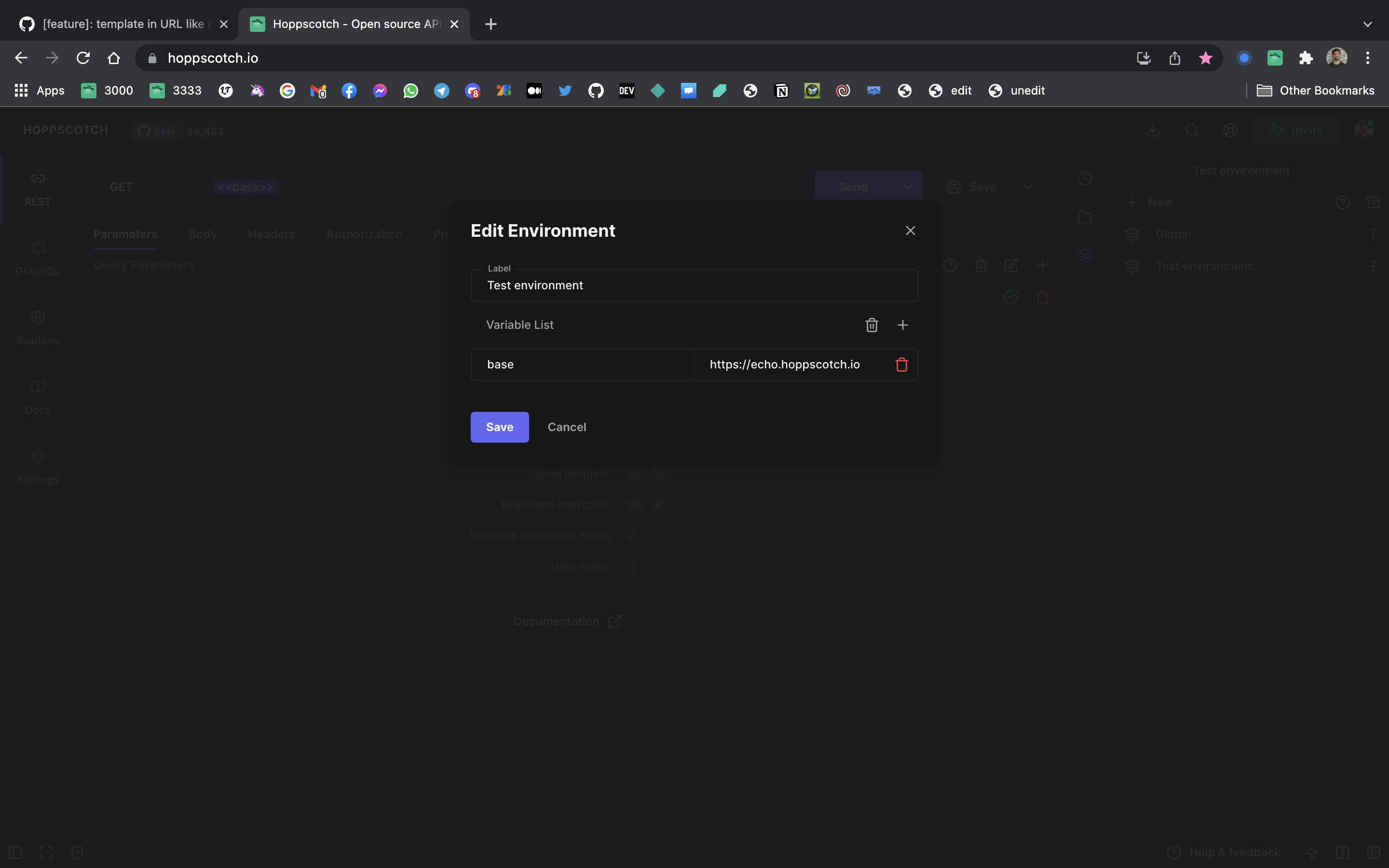Hi @igor-betin, Hoppscotch already has environments support. Read more about it here: https://docs.hoppscotch.io/quickstart/rest#accessing-environment-data