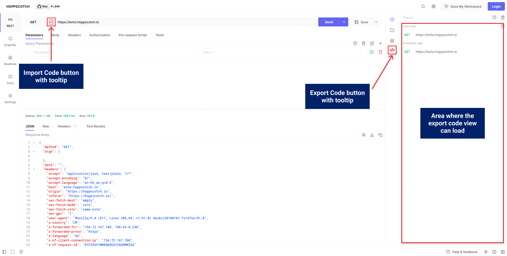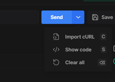 Import cURL and show code has no relation to "send". It would make more sense if they were put under a separate dropdown. Additionally, the documentation no longer reflects the current UI