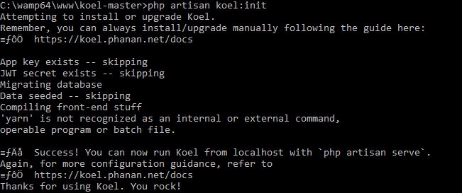 i have followed the documentation when i changed the variable in .env file and run "php artisan koel:init" on the console it says