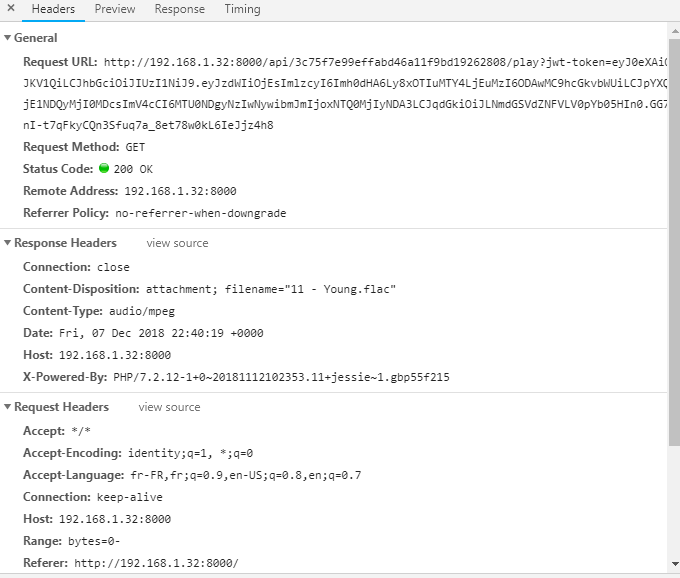 It's working with MP3 file but not with FLAC file. I think i misconfigured nginx since with "php artisan serve" it's working.