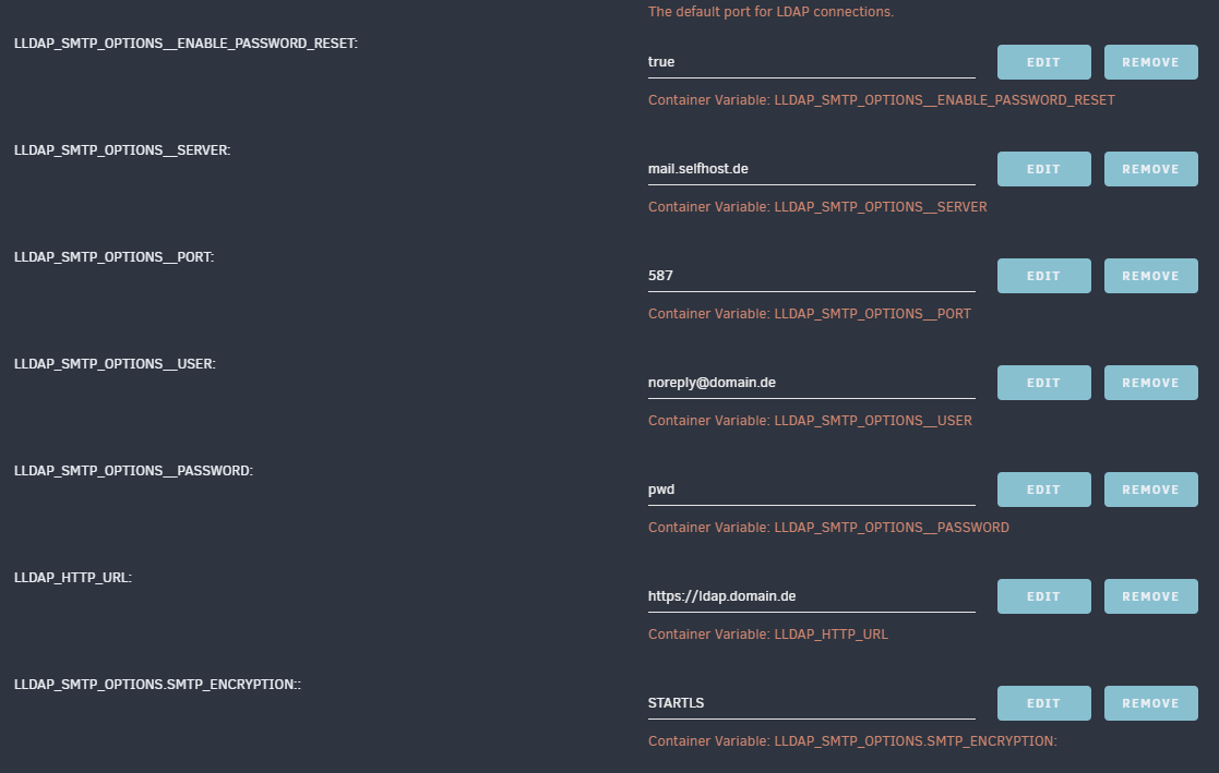 [debug]: Sending email to 'mail@domain.de' as 'LLDAP nobody@lldap' via 'mail'@'mail.selfhost.de':'587'