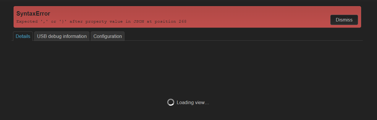 Expected ',' or '}' after property value in JSON at position 269
