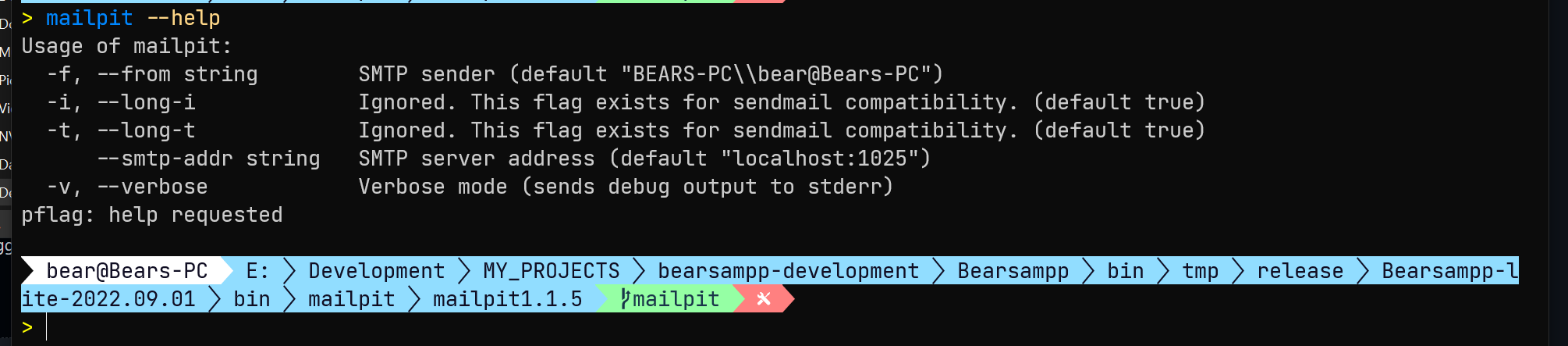 It looks to me as if incomplete flags / arguments are being passed to Mailpit, however I don't know Bearsampp at all so you really should be asking one of their team how to do it. The only direction I can give you is to try Mailpit on the commandline to get the correct flags and arguments, and then modify the PHP script accordingly. Mailpit should be working as expected on Windows as I've tested this myself.