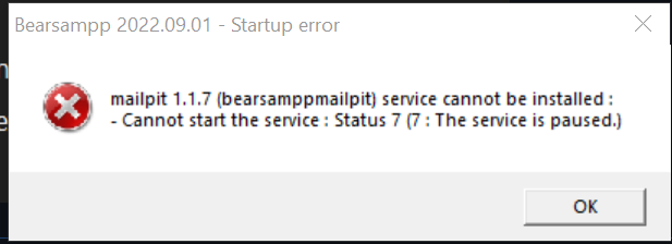 Bearsampp 2022.09.01 # ERROR: Invalid parameter 'mailpitUiPort' : 0(which is coming from here) may be the key. I think your scripts are returning an error before it even tries to run the binary. It looks to me like your scripts aren't interpreting your configuration file correctly.Again, if it is actually running Mailpit, we need to know what the actual command is (that it is executing).