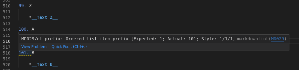 [GH-ISSUE #446] MD029 numbers over "100" #371