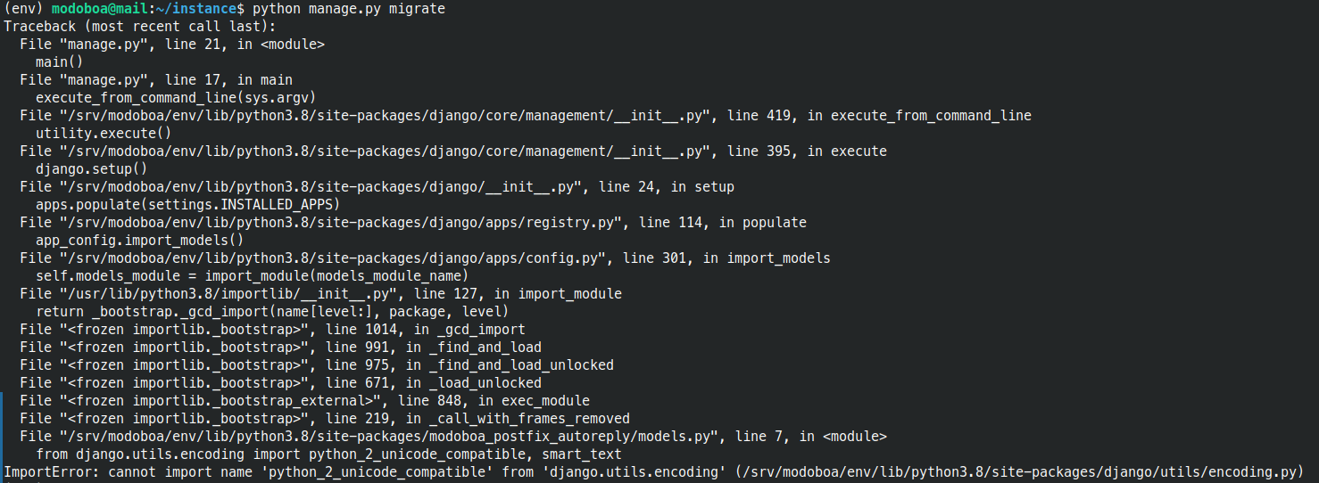 [GH-ISSUE #2775] Modoboa upgrade from 1.17.0 fails #1704