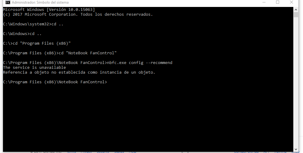 I've tried to run the following command "nbfc.exe config --recommend" with admin rights but it appears the error that the reference of the object is not instantiated. I believe that is a bug, trying to process the code with a non inicializated variable..