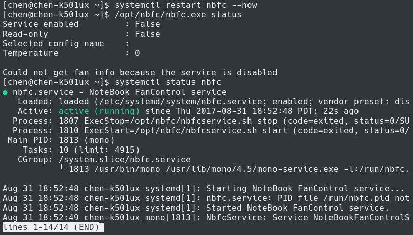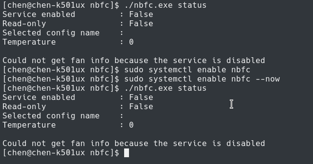 Hi. My system is Arch Linux. I followed the build and install step and used systemctl to enable the service. But it seems nbfc didn't start. Did I miss anything? It worked on Ubuntu though.