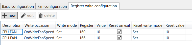 Other observations: GL502VS config writes 0x0A (10) to registers 160 and 166 before writing the fan speed values at 151 and 152, however when the speed changes automatically it doesn't happen, is that some sort of write switch?