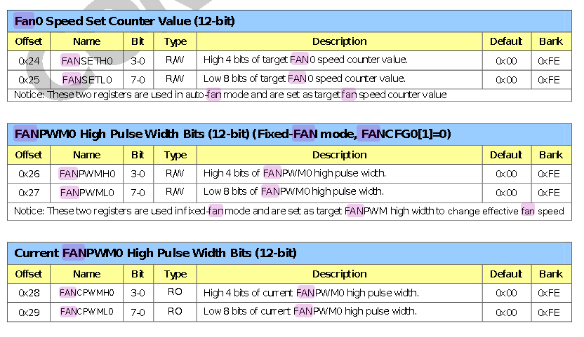 Only changing 0xBD register from 0x13 do a high fan speed.