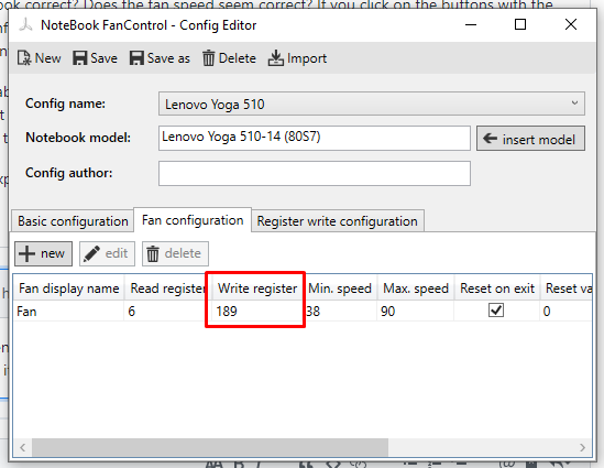 Does the temperature look correct? Does the fan speed seem correct? If you click on the buttons with the two dots, to select a config, the dialog box that shows up will have an edit button. Clicking on the edit button brings up the config editor.