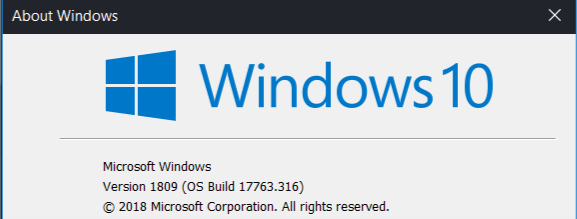 Windows 10 64 Home Edition version: 1809, build 17763.316