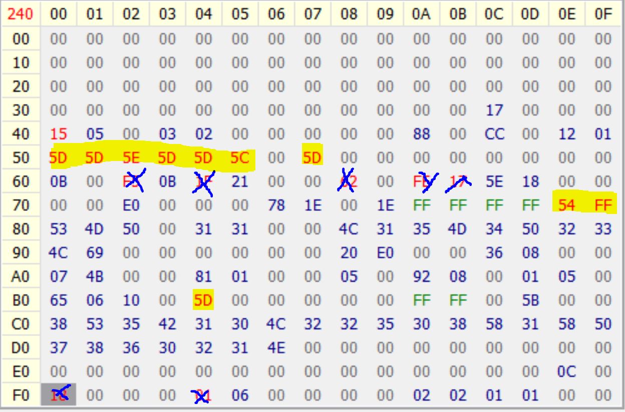 ec-probe.exe monitor --clearlyandRWEverythingI was able to identify a couple of registers that changed in sync with the fan. (Red text and highlighted yellow)I tried all of these registers out with no luck.