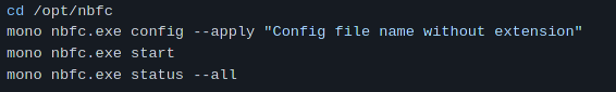 /opt/nbfc/ConfigsAfter you choose the suitable config file successfully, apply it :