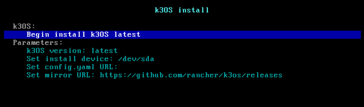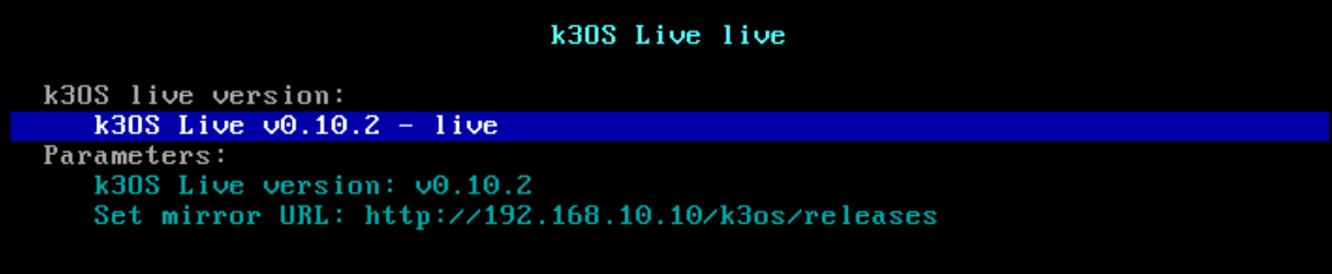 A live-boot version of K3OS is also added to live-boot menu (some parameters can be modified before booting).