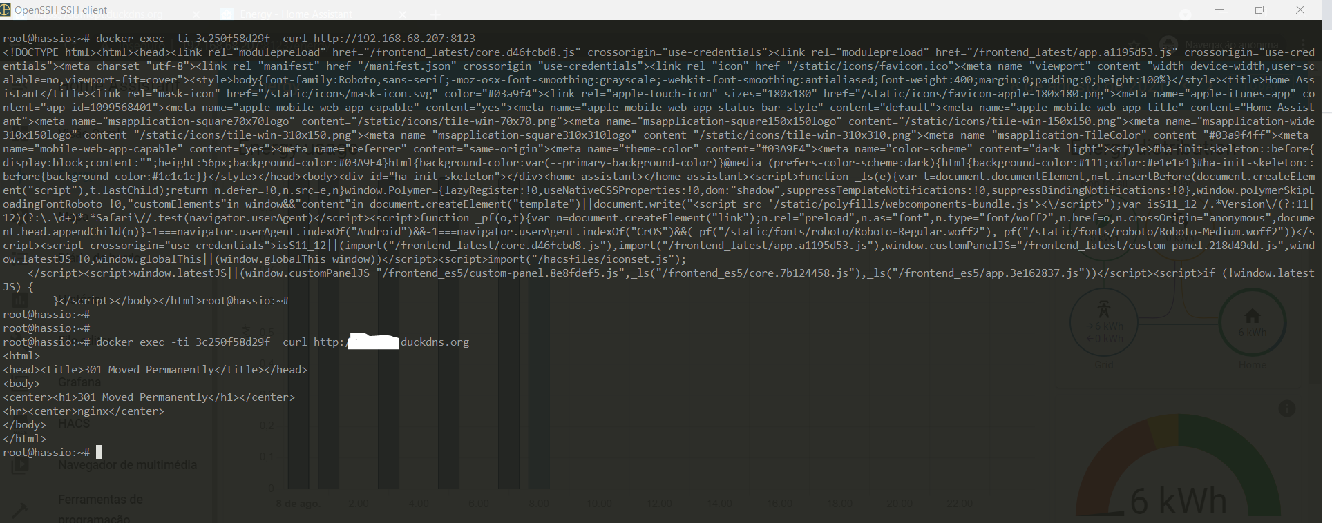 hassiois in the dns. Try curling it directly from within the running container:you may have to use an ip address if the dns server on your network doesn't have an entry for
