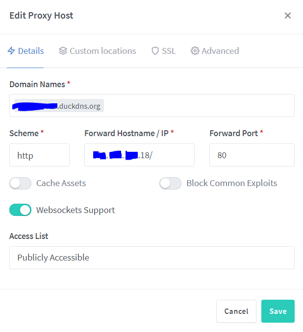 xxx.duckdns.org points to IP:PORT