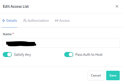 I'm currently experiencing the issue on Nginx Proxy Manager with Access Lists function right after I changed the Cloudflare SSL options. I realized that I've received the warning about exposing my origin IP address via DNS records on the multiple sub-domains on Cloudflare. I changed these sub-domains to be proxied in order to protect my origin IP address. However, it creates a different issue when I tried to visit my domain that shows the error message (ERR_TOO_MANY_REDIRECTS). I resolved this issue by switching from Flexible SSL to Full(Strict) SSL on CloudFlare. I'm currently seeing the page "Forbidden 403 error" when I enable the access list with my own public IP address. I just checked the proxy_host log to see the specific visitor IP, myself, and noticed that it shows different IP address, instead of my Public IP (Cloudflare's IP address's effect on it). I've been researching on this one, it seems that I will need to restore original visitor IPs in this case.