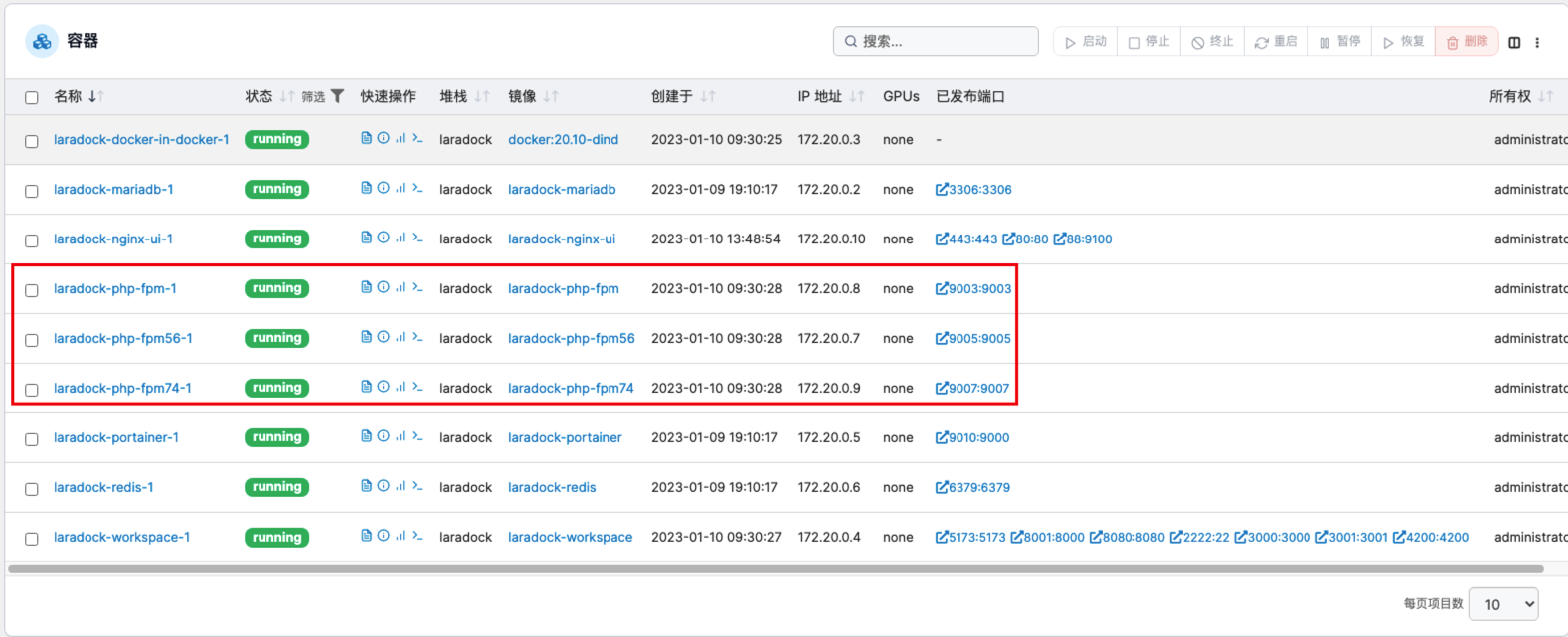 前提是3个容器都启动了 php-fpm php-fpm74 php-fpm56 (容器名),他们的区别就是php版本不同,端口都是9000,在Nginx没什么问题